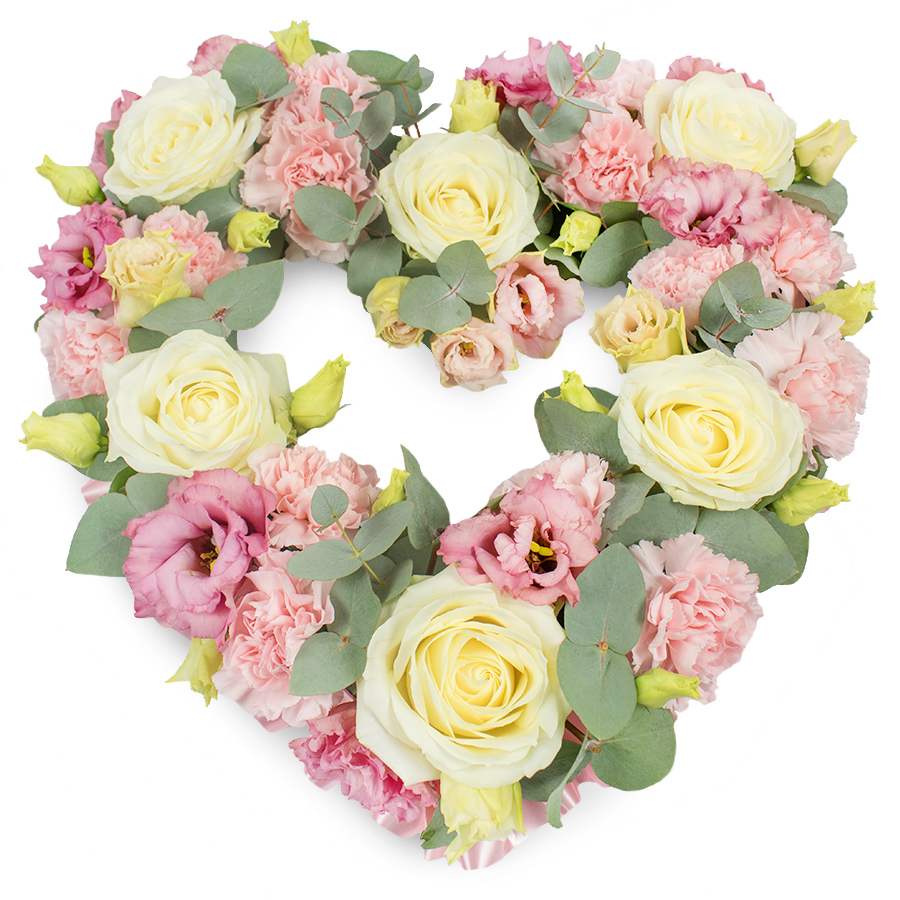 Celebrate and remember with our Radiant White & Pink Memorial Flower Arrangement. This stunning bouquet combines luminous white roses, soft pink carnations, elegant pink lisianthus, and fragrant eucalyptus, meticulously arranged to create a beautiful and meaningful tribute.